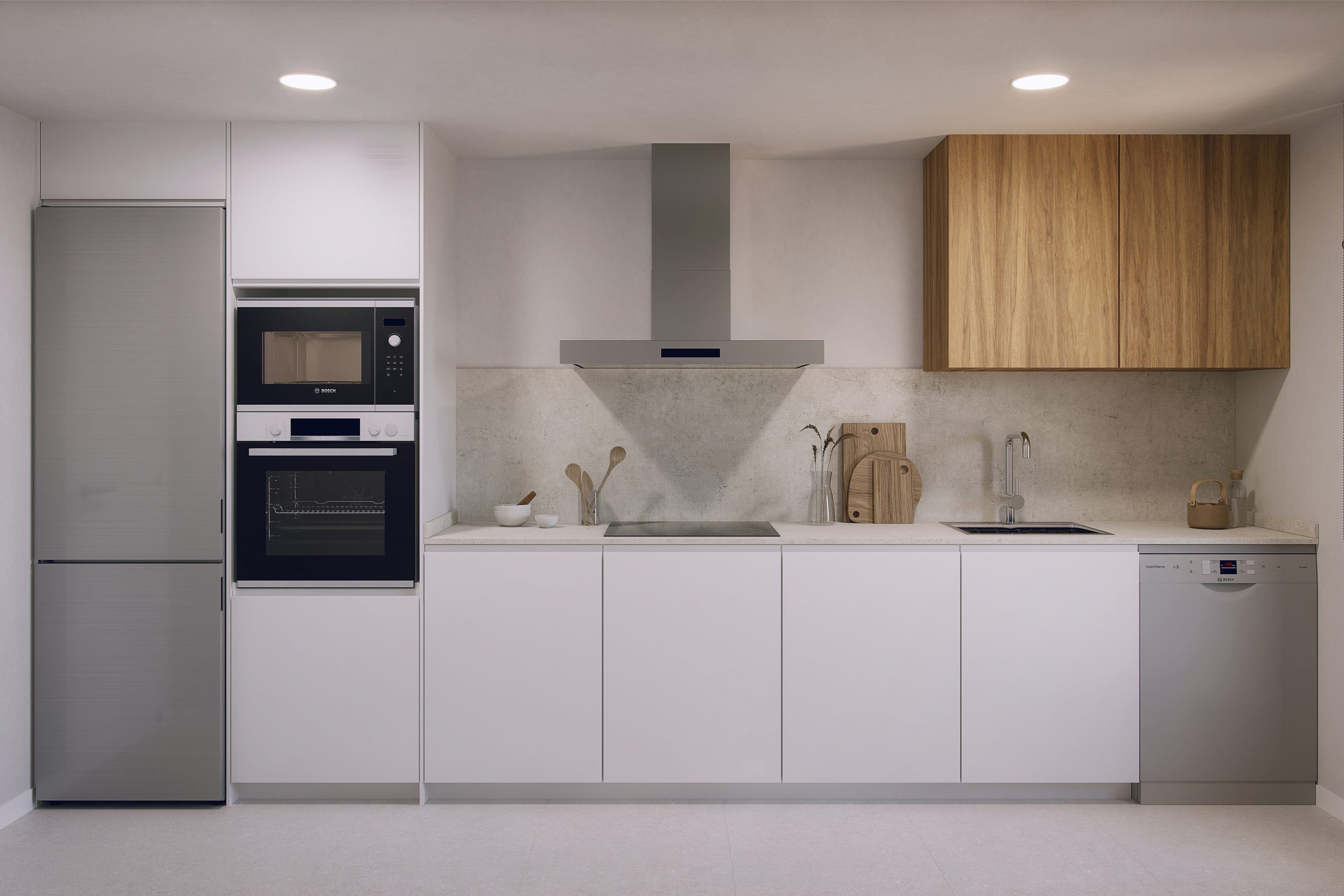 Este tipo de electrodomésticos puede ser una opción ideal para tu cocina si buscas un diseño moderno y minimalista, especialmente en cocinas abiertas al salón o de dimensiones reducidas. Además de su valor estético, los electrodomésticos integrados permiten un mejor aprovechamiento del espacio y facilitan una distribución más equilibrada de la cocina.