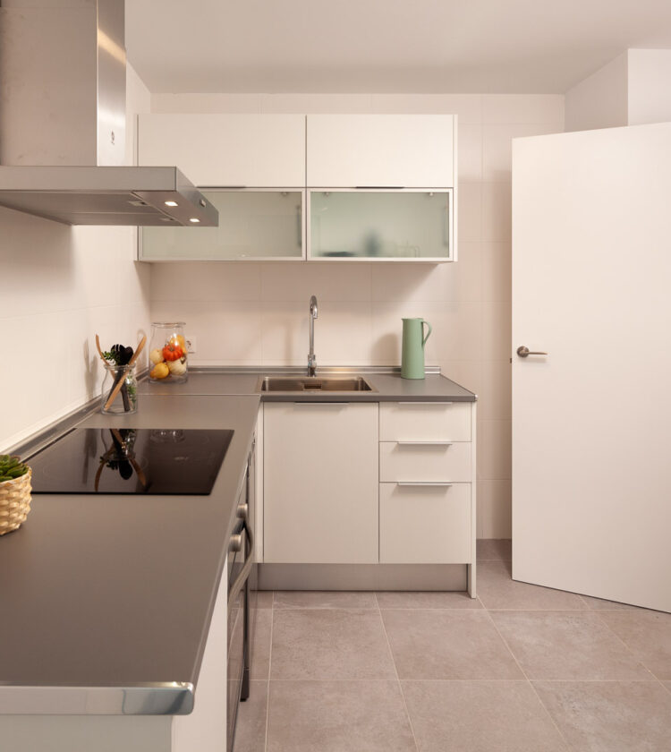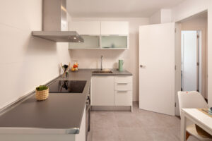 - Cocinas amuebladas y equipadas con placa vitrocerámica, horno y campana extractora