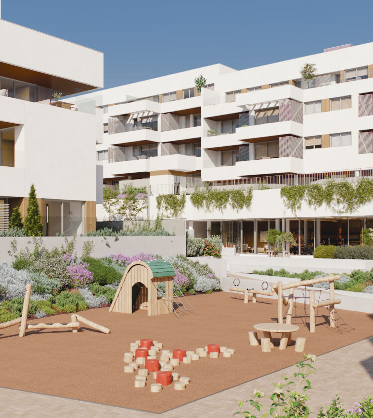 El proyecto se compone de 108 viviendas de 2, 3 y 4 dormitorios, todas ellas con amplias terrazas, plazas de garaje y trastero.