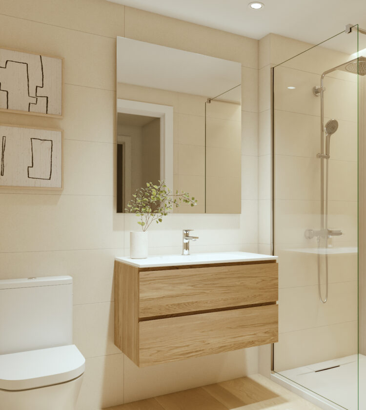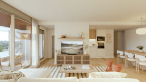 Todas las viviendas de AQ Querae están equipadas con sistemas de aerotermia, suelo radiante – refrescante, ventanas con rotura de puente térmico y acristalamiento tipo climalit o similar garantizando la máxima eficiencia energética. Además, todos los edificios cuentan con paneles fotovoltaicos.